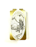 Each Unique design combines the ancient art of scrimshaw done long ago by American whalers with the modern usage of resin material. Lines are cut in with a sharp scribe. Ink is then rubbed into each hand-engraved original to "expose" the image.